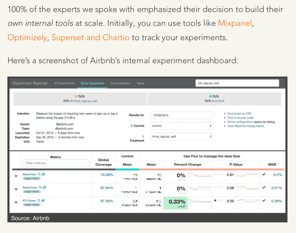 What I’m not sure about is how much of this is feasible / manageable at a B2B SaaS company where the user base is typically much smaller than the consumer properties where Growth teams are most prevalent (i.e. Facebook, AirBNB, Uber, etc). The number of MAUs that would be at a B2B SaaS company would typically be orders of magnitudes smaller then a consumer facing property (with some exceptions such as Slack). On the one hand, it will be much easier to actually run and keep track of experiments since the volume of data will be more manageable. That said, the feedback loop is going to be longer and the statistical significance of specific experiments is going to much less due to lower volumes.