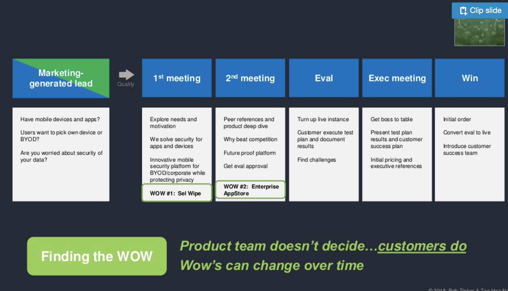 - Playbook –, institutionalizing all of these micro decisions into an easy, documented, scalable playbook that any new person can pick up and start using within a few months is the key to success. I’ve noticed that Sigsci has a playbook already defined and it seems very similar to the MobileIron playbook (not a surprise). What is missing is defined “Wow”s which is really key to unlocking results and will/should shape the roadmap for PMs.